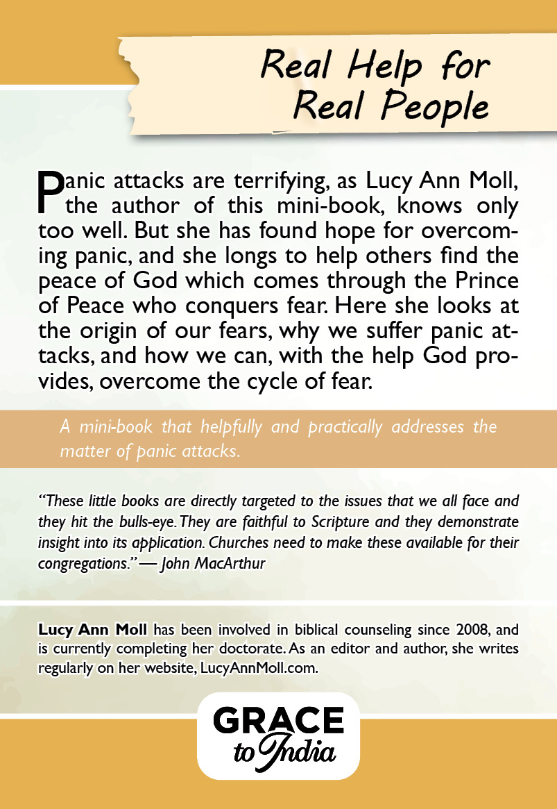 Panic attacks are terrifying, as Lucy Ann Moll, the author of this mini-book, knows only too well. But she has found hope for overcoming panic, and she longs to help others find the peace of God which comes through the Prince of Peace who conquers fear. Here she looks at the origin of our fears, why we suffer panic attacks, and how we can, with the help God provides, overcome the cycle of fear.