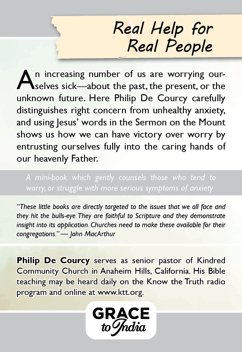 An increasing number of us are worrying ourselves sick—about the past, the present, or the unknown future. Here Philip De Courcy carefully distinguishes right concern from unhealthy anxiety, and using Jesus’ words in the Sermon on the Mount shows us how we can have victory over worry by entrusting ourselves fully into the caring hands of our heavenly Father.